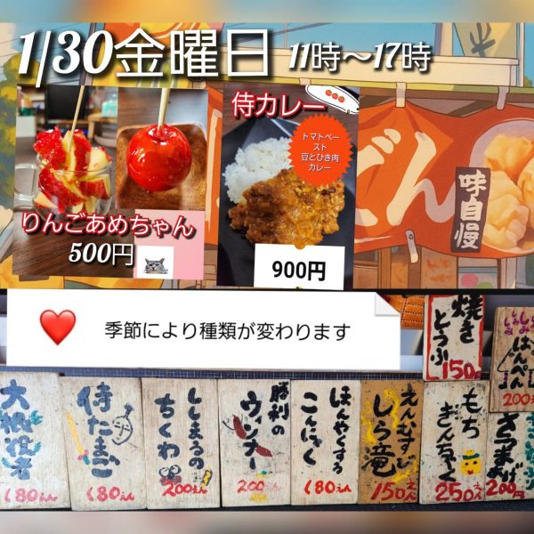 おでん🍢、りんご飴🍎、そして侍カレー🍛の出店です!