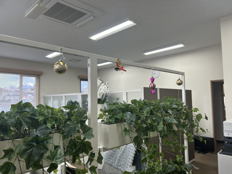 事務室のパーテーションにさりげなくオーナメントが🌟